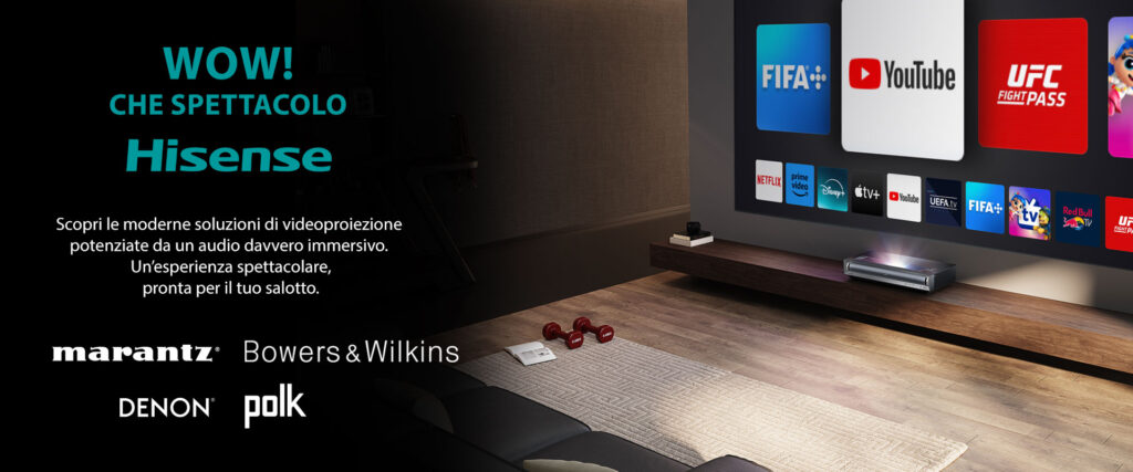 Sperimenta le più moderne soluzioni di videoproiezione Hisense potenziate da un sistema audio multicanale davvero immersivo, firmato dai grandi Marchi dell’Hi-Fi Marantz, Bowers & Wilkins, Denon e Polk Audio.